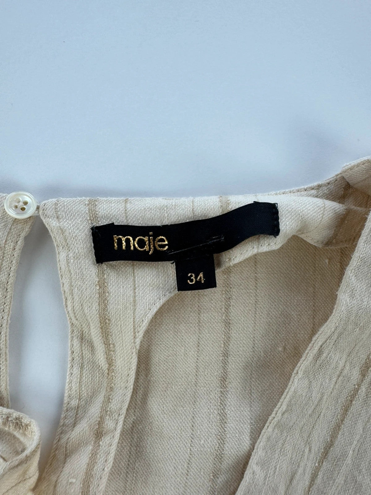 Pristatome Maje moterišką kombinezoną su linu, kuris puikiai tinka šiltam orui ir suteikia jums stilingo žavesio. Šis XS dydžio kombinezonas yra pagamintas iš 66% lino, todėl jis yra itin patogus ir kvėpuojantis, idealiai tinkantis tiek kasdieniam nešiojimui, tiek ypatingoms progoms.