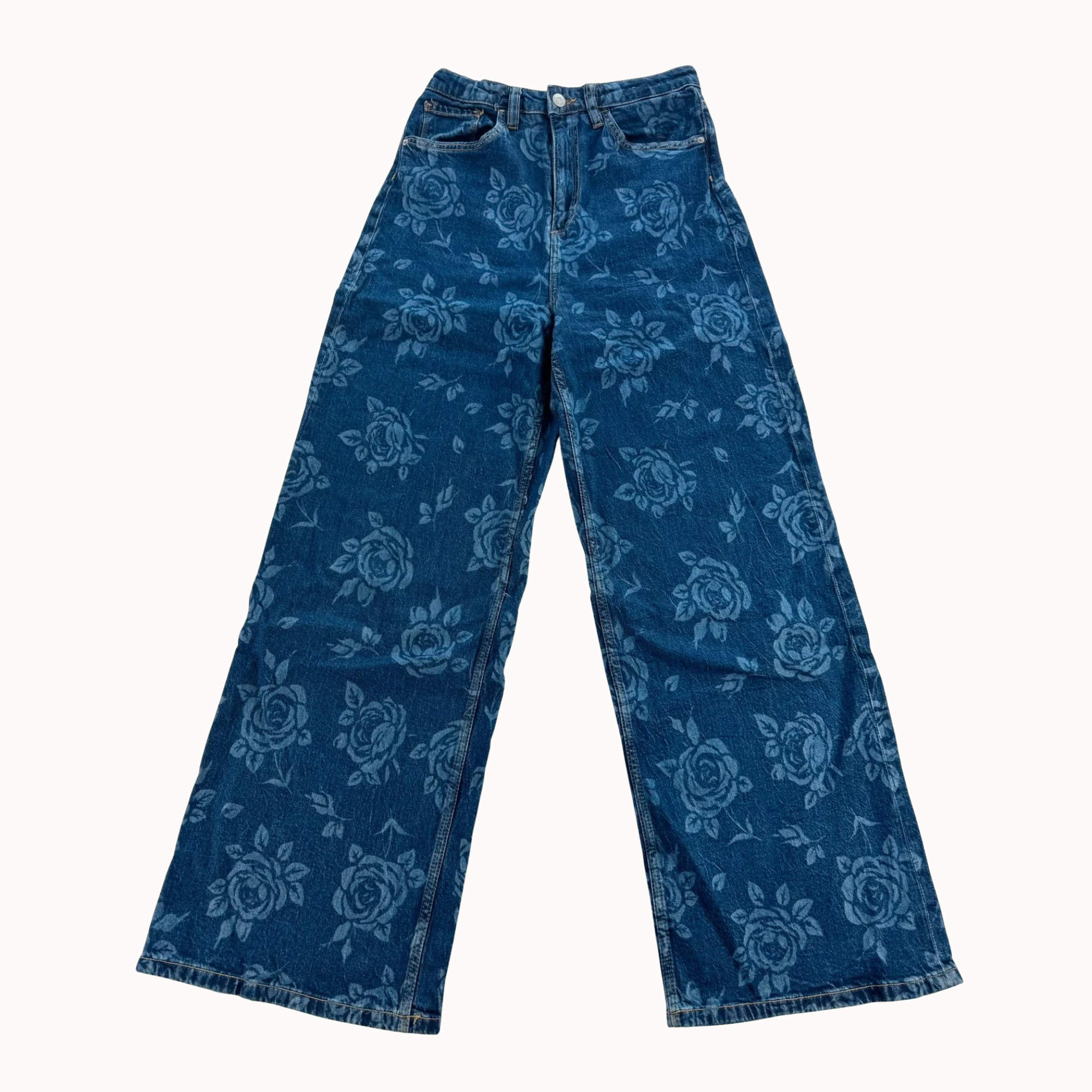 H&M Platūs Džinsai su Ornamentais, S dydis yra puikus pasirinkimas stilingiems ir patogiems drabužiams. Šie džinsai pasižymi žaviais ornamentais ir puikia kokybe, todėl jie taps vienu iš jūsų mėgstamiausių garderobo elementų.