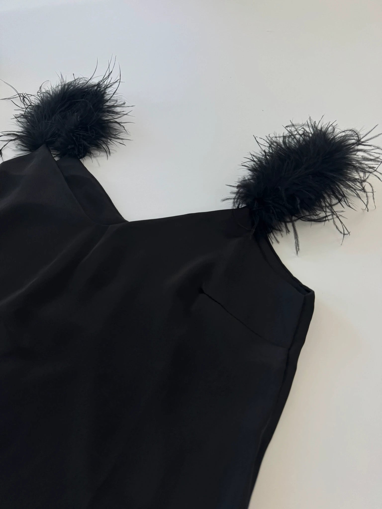 Marabel Showroom Juoda Palaidinė su Plunksnom, S