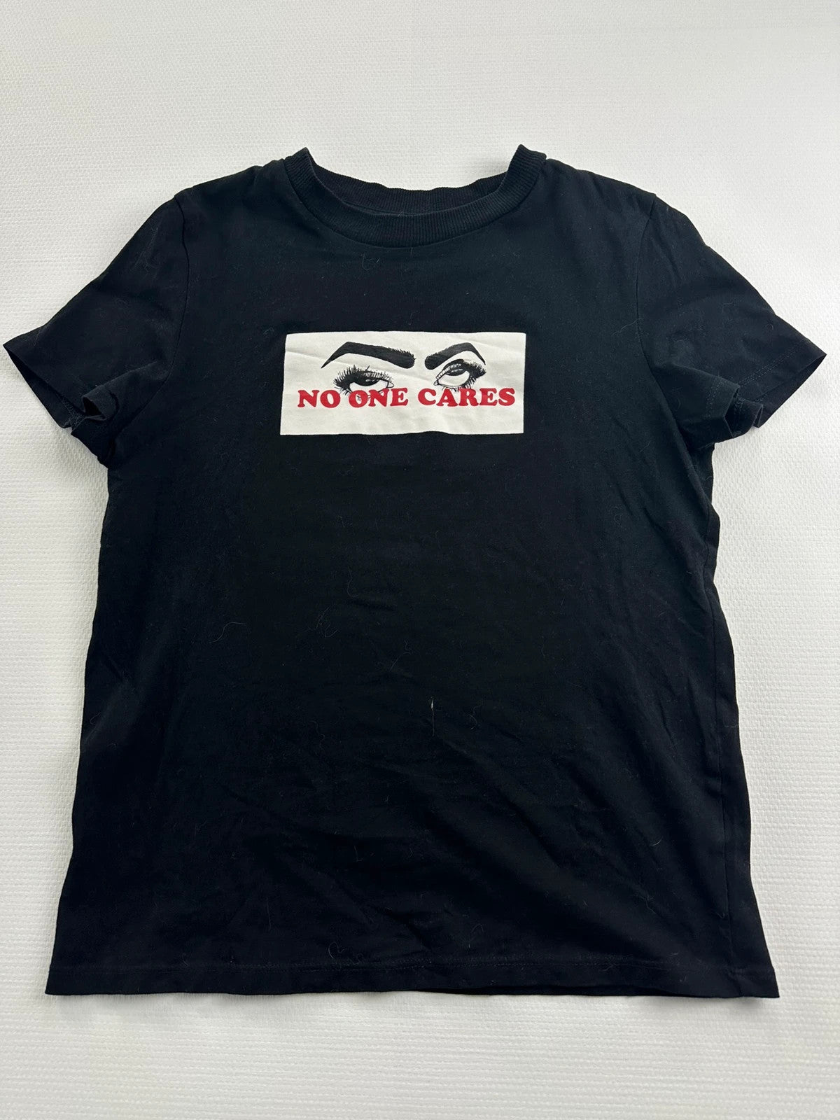 Stilinga House juoda moteriška palaidinė, puikiai tinkanti kasdieniam dėvėjimui, su išskirtiniu „No one cares“ užrašu, kuris suteikia išskirtinumo ir charakterio jūsų aprangai.