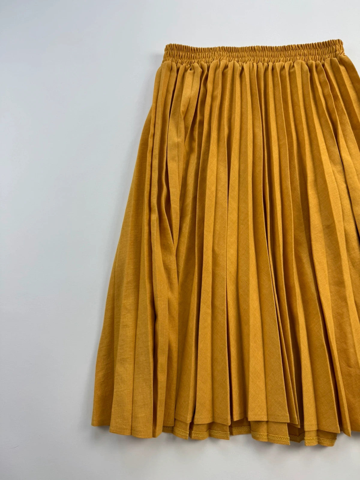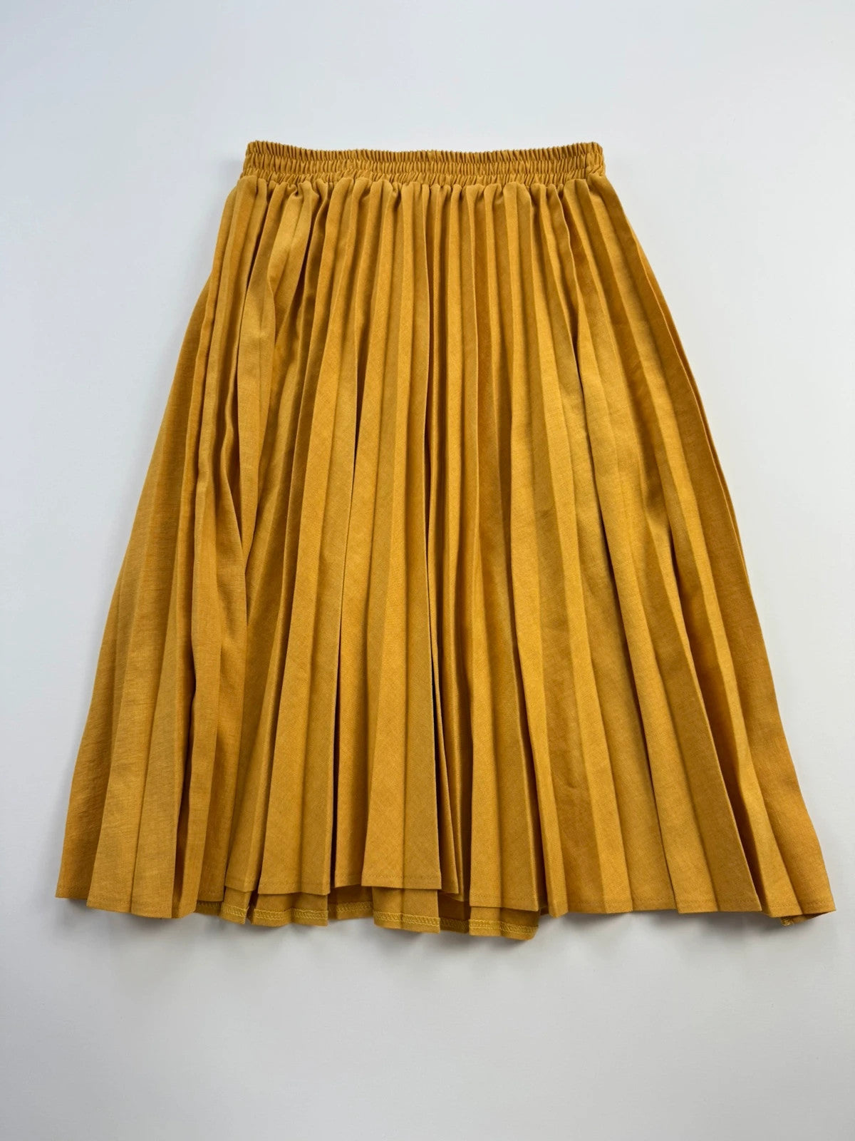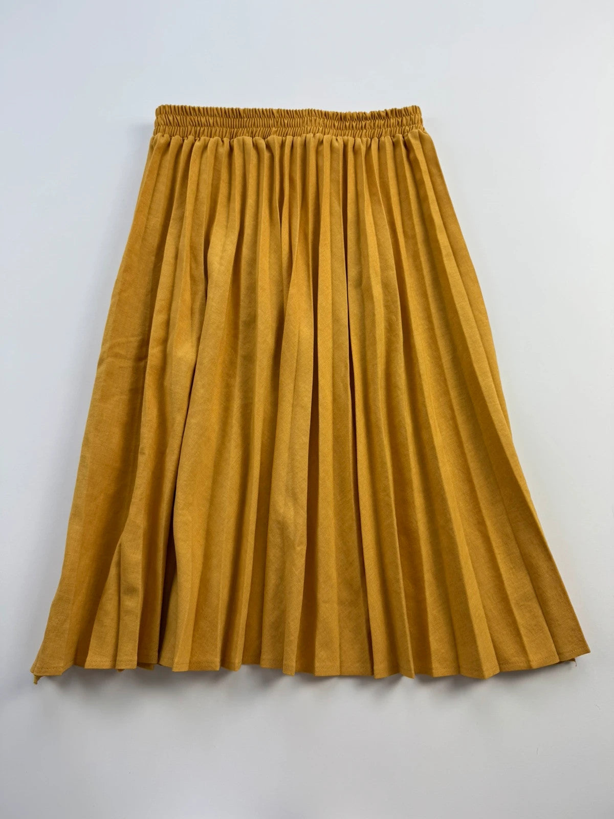 Geltonas klostuotas sijonas iš A.P.line yra puikus pasirinkimas norint sukurti elegantišką ir stilingą įvaizdį. Rankų darbo, šis sijonas pagamintas Lietuvoje ir pasižymi universalumu, nes ant gumos tempiasi daug, todėl puikiai tinka įvairiems kūno tipams.